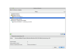 Instalace knihovny se provádí standardním způsobem pomocí „Správce knihoven“ (Soubor › Knihovny a objekty › Správce knihoven…). Tlačítkem “Přidat...” otevřete výběr další knihovny, kde zadáte cestu ke knihovně.