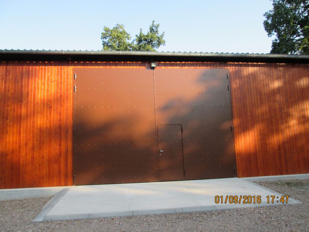 • Typ VOTO A1a – ocelová vrata s  plnými vratovými křídly, opláštěná jednostranně, oboustranně nebo oboustranně s vloženou izolační výplní
