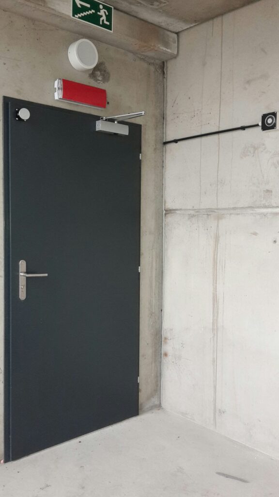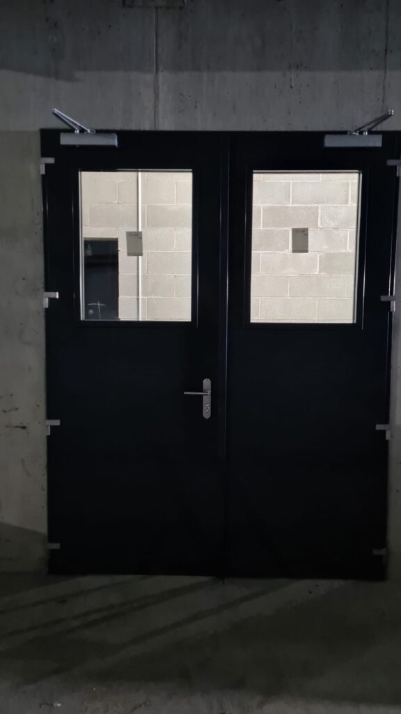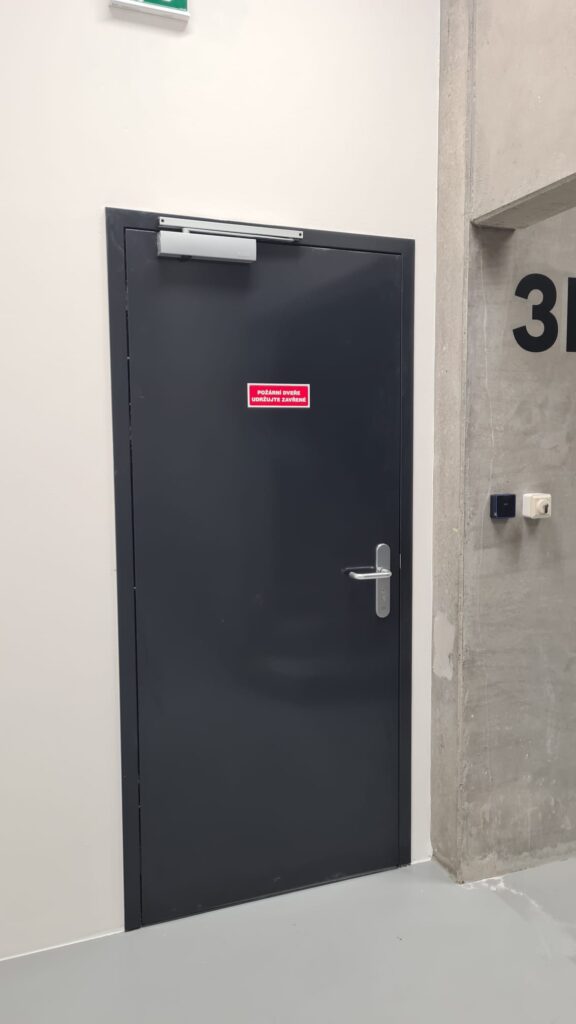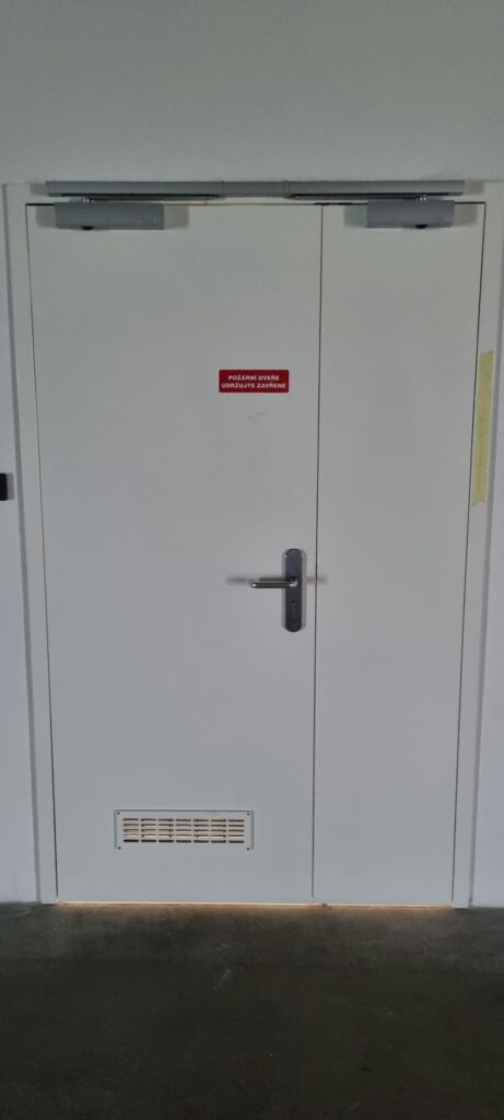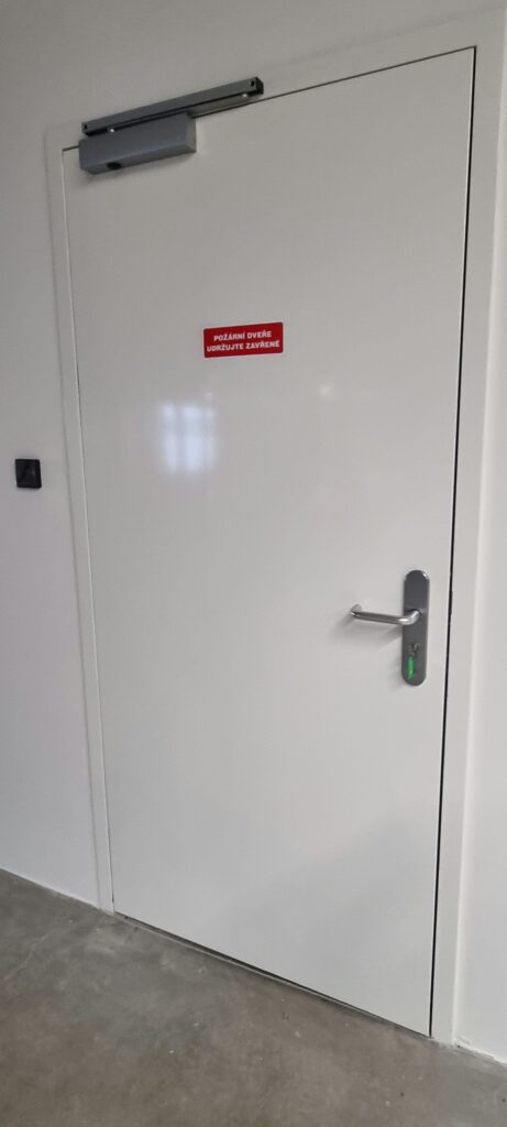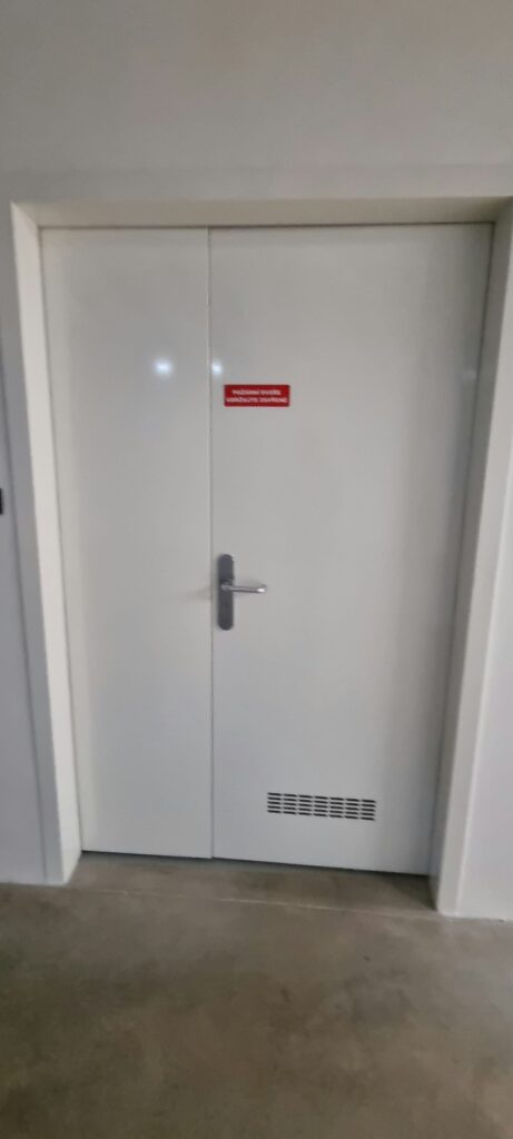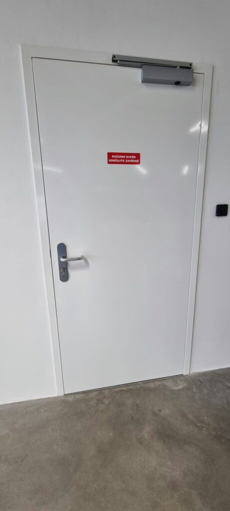• ocelové požární dveře (plné, prosklené), případně též kouřotěsné, v odolnosti EW, EI 30 DP1; EW, EI 45 DP1; EW, EI 60 DP1; EW, EI 90 DP1