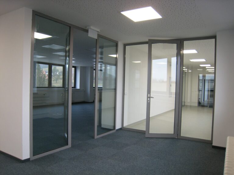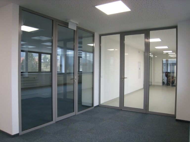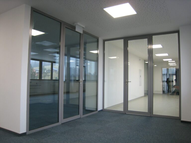Součástí sortimentní nabídky firmy MONTKOV jsou též ocelové prosklené stěny. Ocelové prosklené stěny jsou zpravidla vytvořeny kombinací dílčích výplní stavebních otvorů, tj. zpravidla oken (fixních i otevíravých) a prosklených dveří. Prosklené stěny se vyrábí ze systémových profilů Jansen, typ profilu se volí podle toho v jaké části objektu se prosklená stěna nachází.
