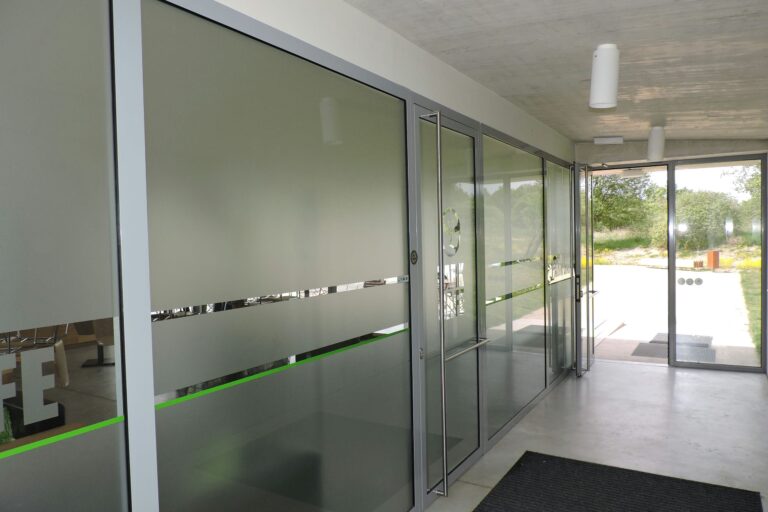 Prosklené stěny, které se zpravidla montují dodatečně do předem připravených stavebních otvorů, se dodávají obvykle s finální povrchovou úpravou práškovou barvou, případně se stříkaným rozpouštědlovým nátěrem, v odstínech dle RAL.